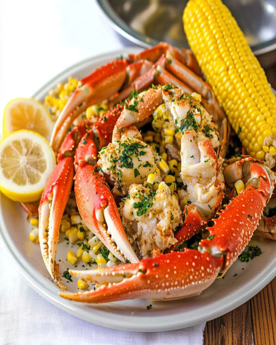 To elevate your seafood boil, serve the crab legs with sides like corn on the cob and baby potatoes. These hearty sides not only balance the meal but also soak up the delicious flavors from the crab. A fresh garden salad can also add a refreshing contrast to the richness of the crab.
